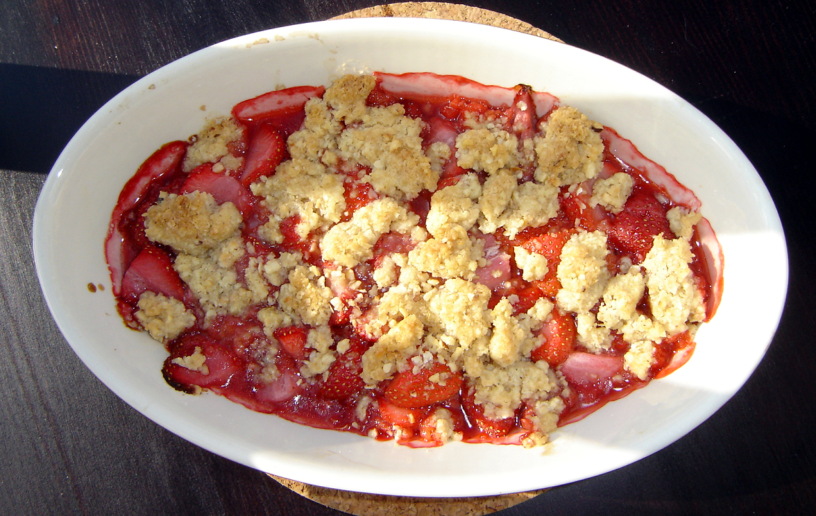 Es gibt ja immer mal wieder Rezepte, die die Blogger-Runde machen. Eines davon könnte bestimmt dieses Erdbeer – Crumble hier werden bzw. ist es schon. Gesehen bei zorra und High Foodality und dirket ausprobiert.