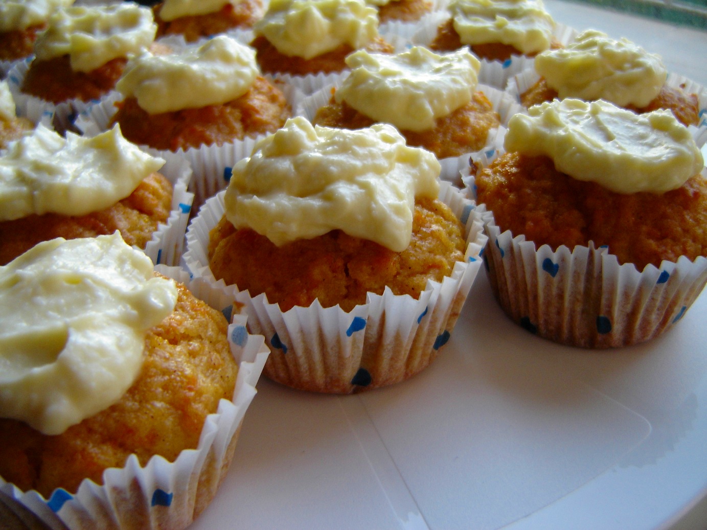 Passend zur Frühlings- und Osterzeit gab es tolle Cupcakes mit frischen Orangen und Möhren. Dazu eine leicht würzige Note durch den Zimt und Muskat und noch ein süßes Topping oben drauf und fertig sind Sie:Zutaten: