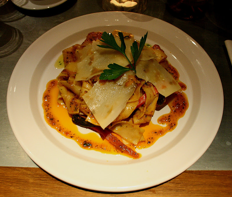 Oben: Parpadelle mit gebratenem Gemüse in einem roten Pesto. Hat absolut hervorragend geschmeckt. Das Gemüse (Paprika, Aubergine, Zucchini) war genau auf den Punkt durch und das rote Pesto war in allen Belangen, so wie es sein sollte! Kann mich nicht erinnern schon mal ein solch gutes Pesto gegessen zu haben.